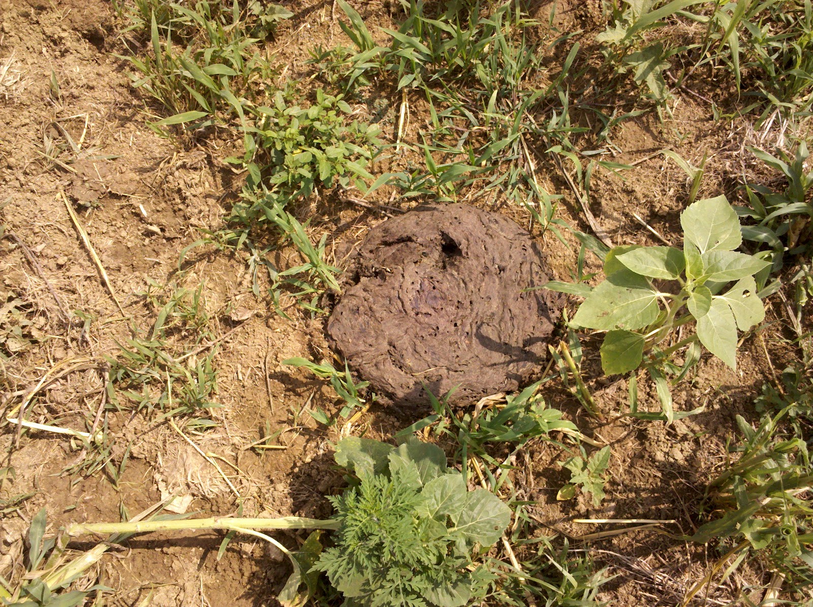 Things are not so rosy in the smaller plot where I planted the millet/milo/corn mixture. Evidently one or more of my neighbor's cows got through the fence and decided to make a meal of my grains. They are pretty much totally destroyed, grazed off a few inches above the ground: